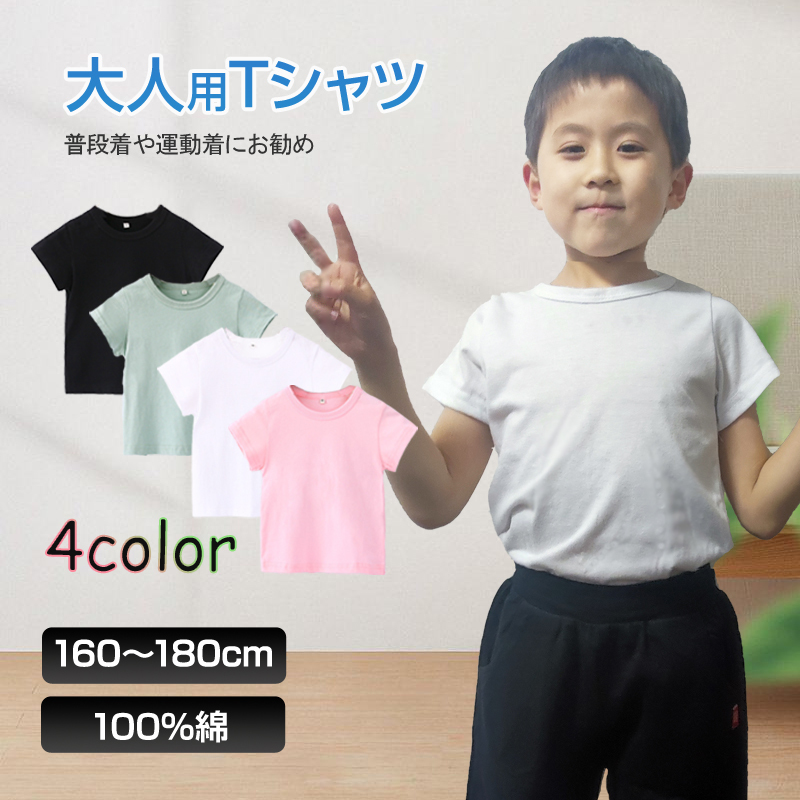 - 半袖 Tシャツ 100%綿 無地 ジュニア レディース メンズ 男女兼用 160 170 180 コットン 吸汗速乾 中学生 高校生 大人 普段着 カジュアル