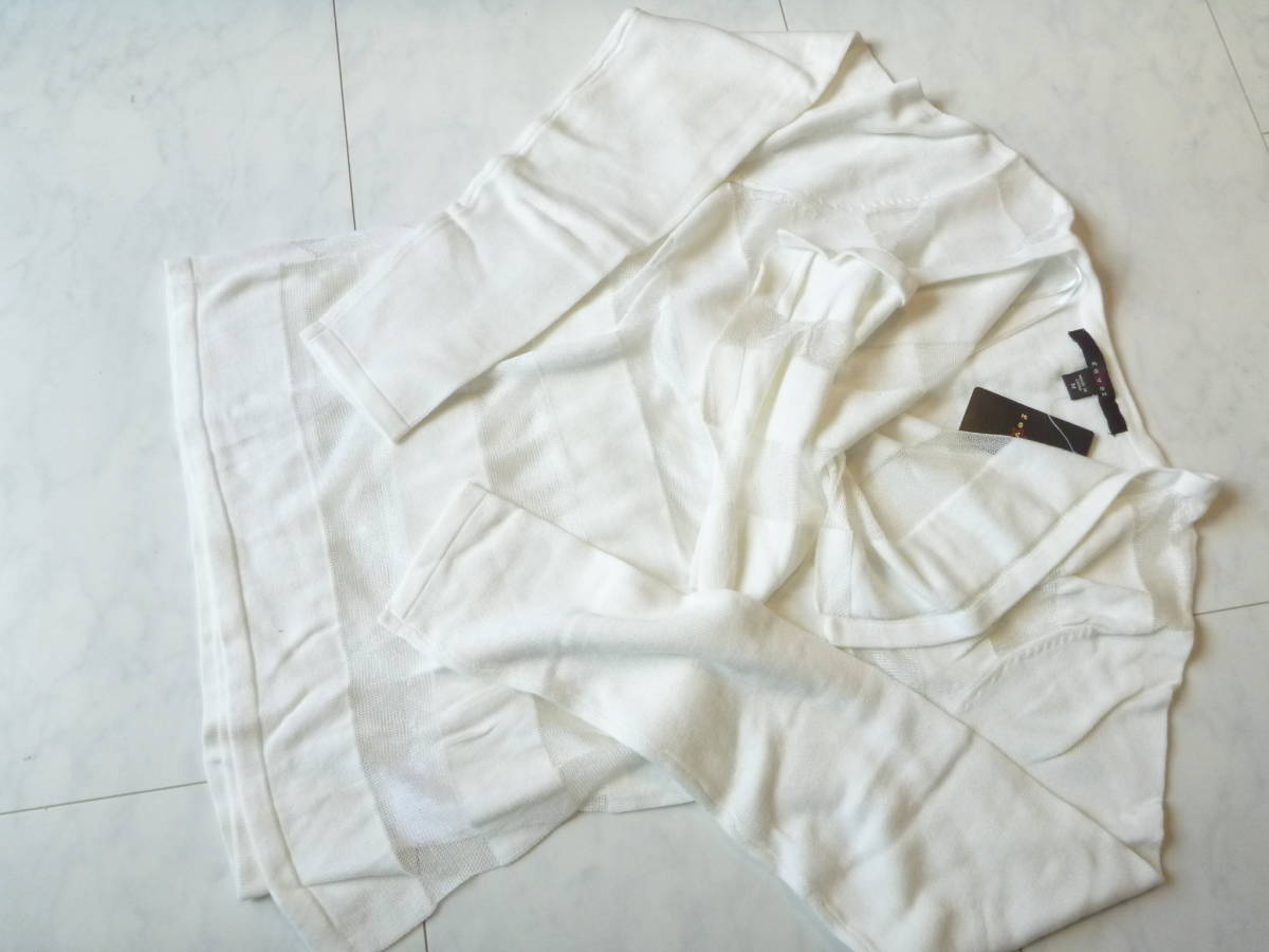 - 新品 fever フィーバー★白 ボーダー編み 透け感 羽織り カーディガン M