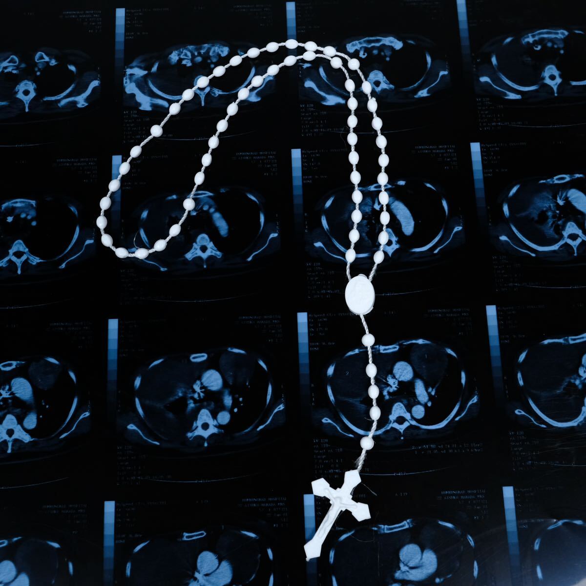 - ビンテージ 1970s 樹脂製 白 ロザリオネックレス キリスト教 ビーズ ウッド ヴィンテージ アンティーク 教会