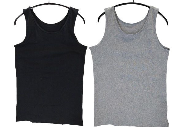 - SI1733◇ 新品 ノースリーブ 2P タンクトップ トップス インナー 丸首 ストレッチ コットン 薄手 無地 シンプル 3L 黒 グレー 送料350円