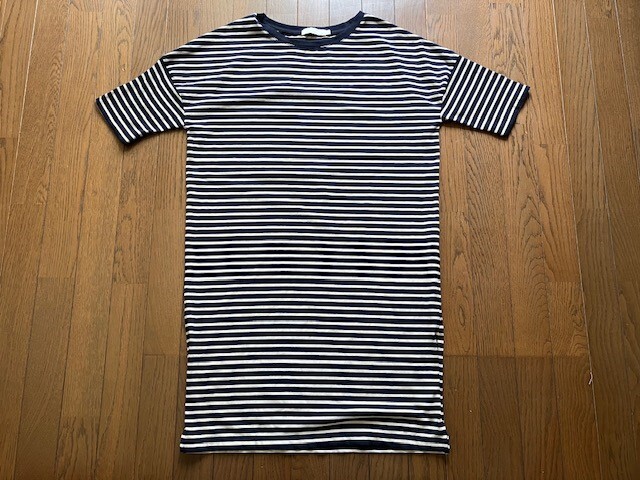 > ビッグTシャツ 半袖 黒×白ボーダー ニット ワンピース ゆったり 肩幅66㎝ 袖丈17㎝ 身幅56㎝ 着丈94㎝ 送料無料 底値