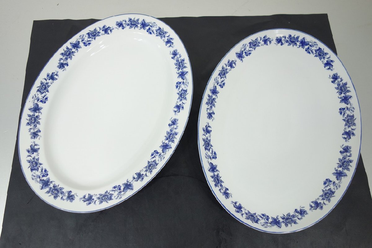 - 2点セット 大皿 楕円形皿 オーバル型 MARUKI CHINA M-ミ-345 幅:41cm 白地にブルー花柄模様 レストラン バイキング 管846