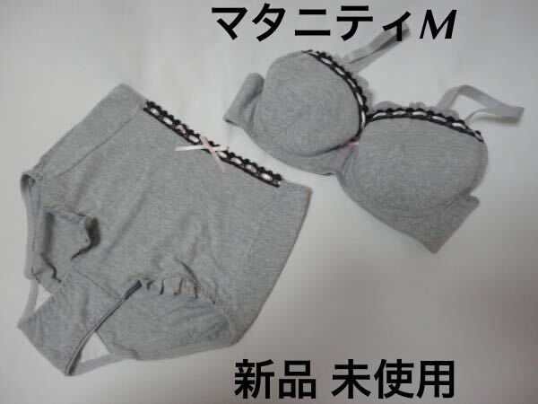 > 新品 マタニティ ブラ & ショーツ 2点 セット ( M ) 未使用 授乳 出産準備 妊娠 インナー パンツ ポイント消化 クーポン利用 グレー