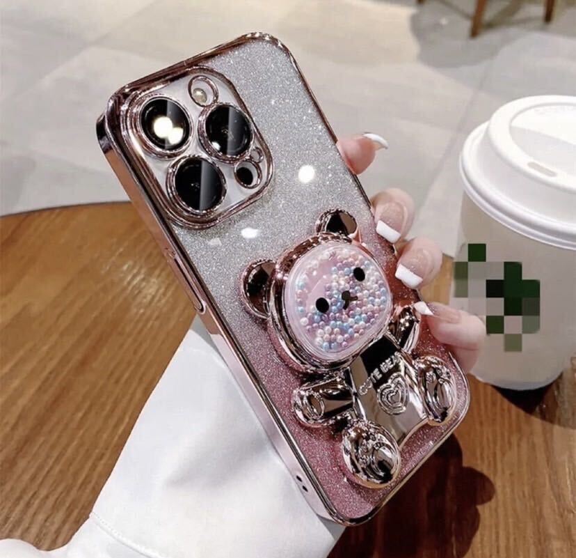 - iPhone15Pro MAX スマホケース 携帯ケース カバー ビーズ入り クマちゃん ローズメッキ 液晶ケース フィルム ブルーライト567w新作