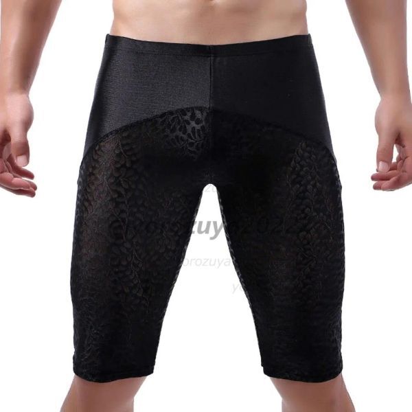 > 117-264-25 メンズ 光沢 艶々 メタリック ロングジョンズ パンツ【ブラック,XLサイズ】男性 ショーツ パンツ セクシー アンダーウェア.1