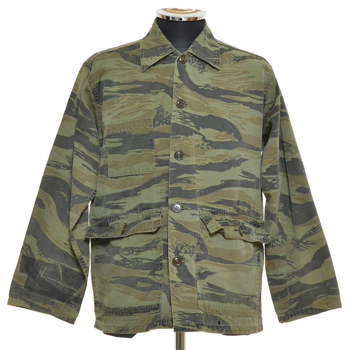 > ●475634 KAMO ●ハンティングジャケット フィールド 70s ヴィンテージ サイズS タイガーカモ メンズ カーキ グリーン カモフラ
