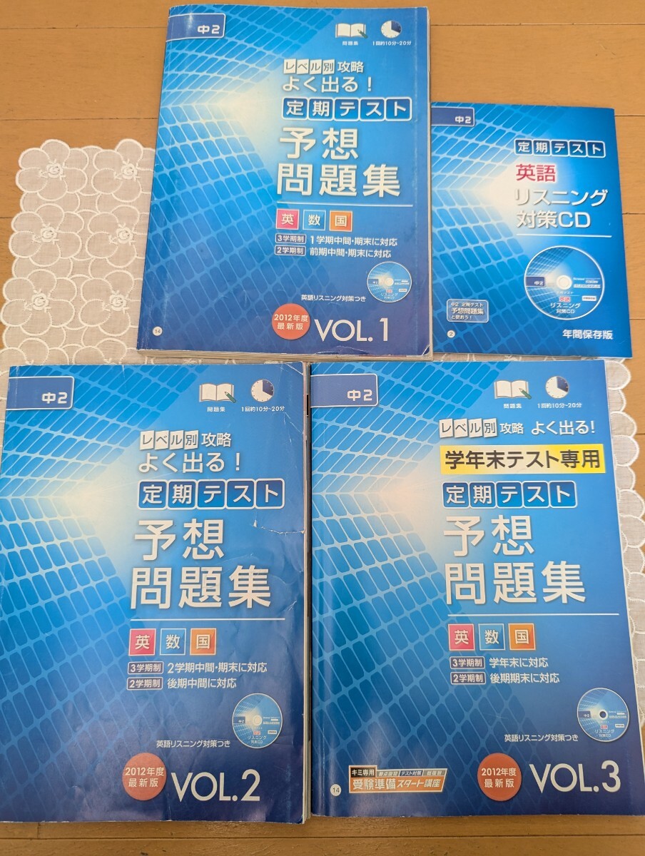 - 中古☆進研ゼミ中学講座3冊☆2年生☆charenge☆定期テスト予想問題集・英・数・国☆VOL.1・VOL.2・VOL.3・英語リスニング対策CD☆送料込み