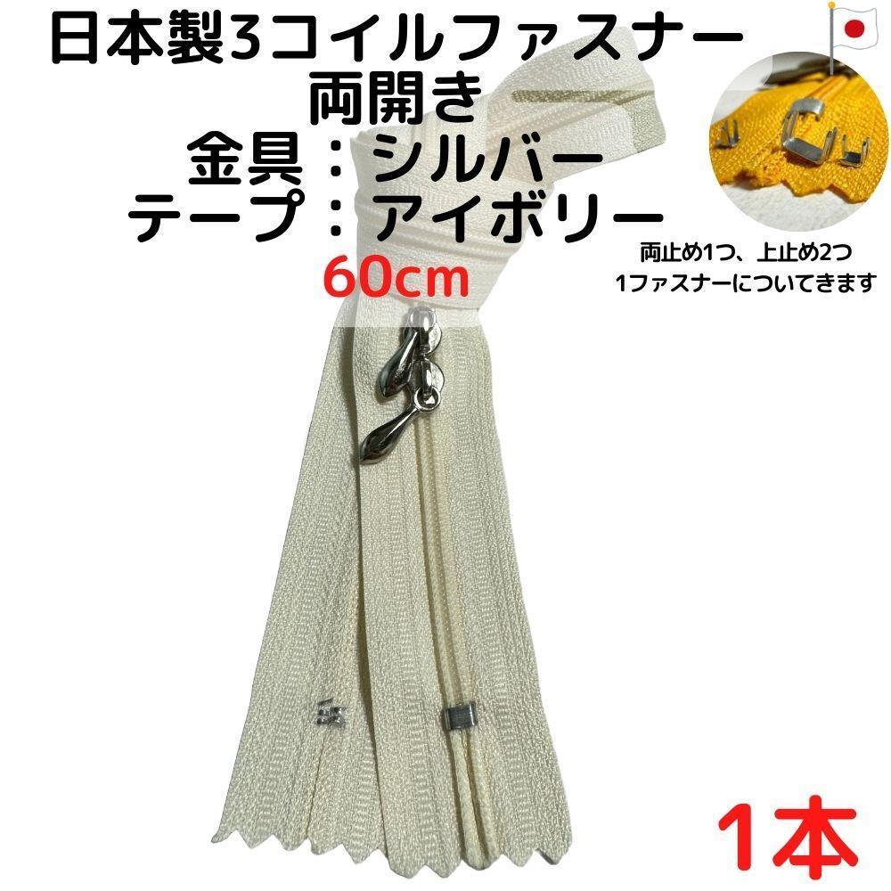 - ファスナー60cm両開き1本シルバーxアイボリー【CFSS60I1】