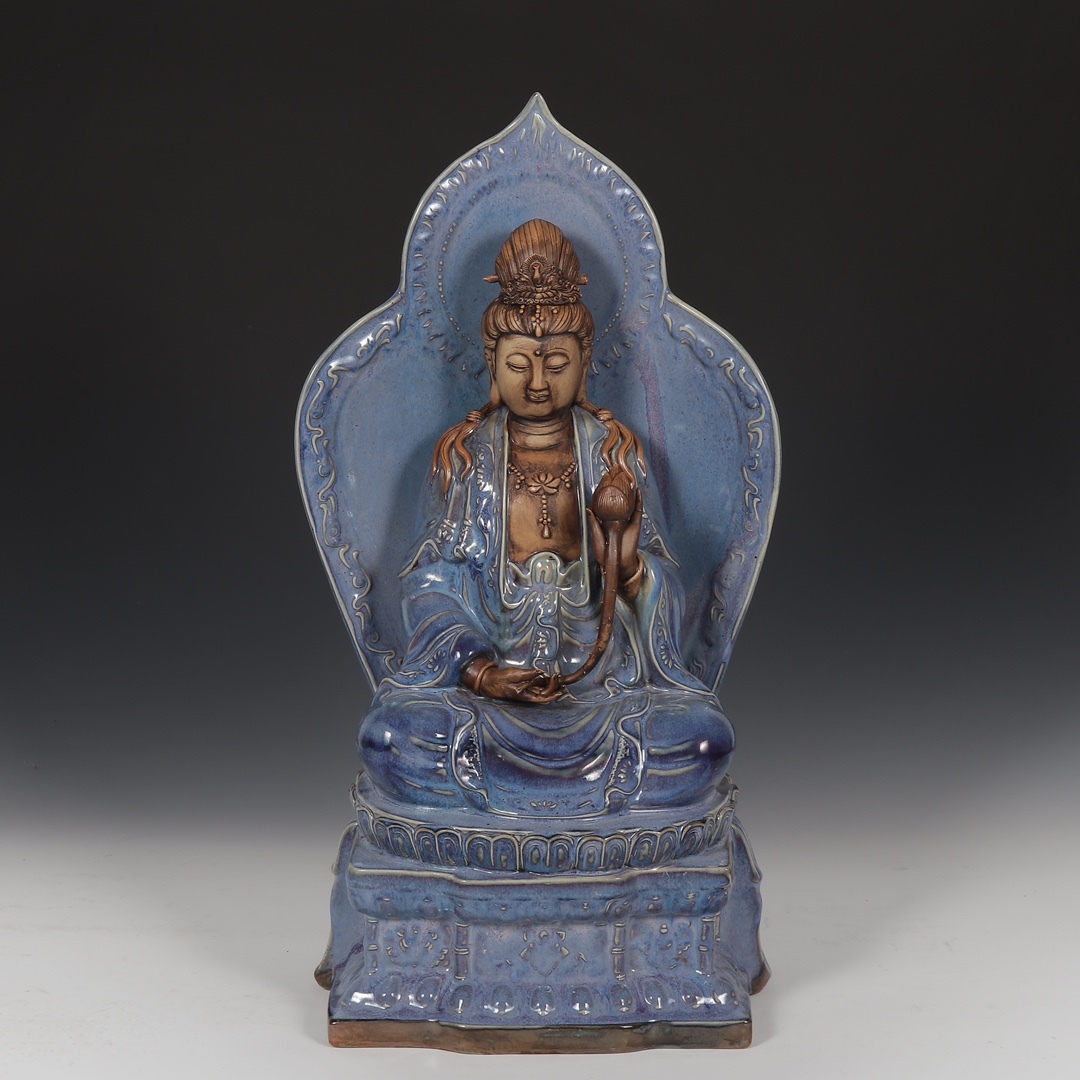 - 鈞窯 葡萄紫釉 觀音坐像 唐物 陶磁器 中国美術 置物 賞物 RG51