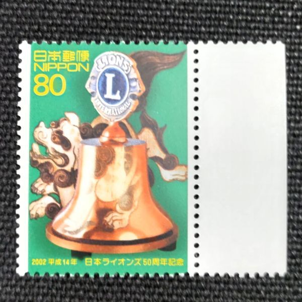 - [24041103]【日本ライオンズ50周年記念】単片 耳紙付「ゴング及び唐獅子」著色絵杉戸表獅子裏波二麒麟 伝俵屋宗達筆図 80円 2002年 美品*