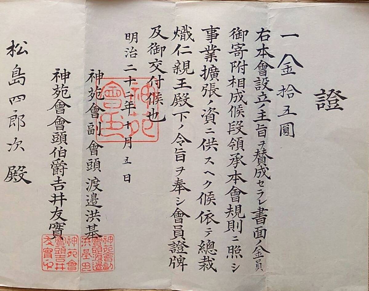 - f24070537〇寄付行為 神苑会 群馬県 明治20年〇和本古書古文書