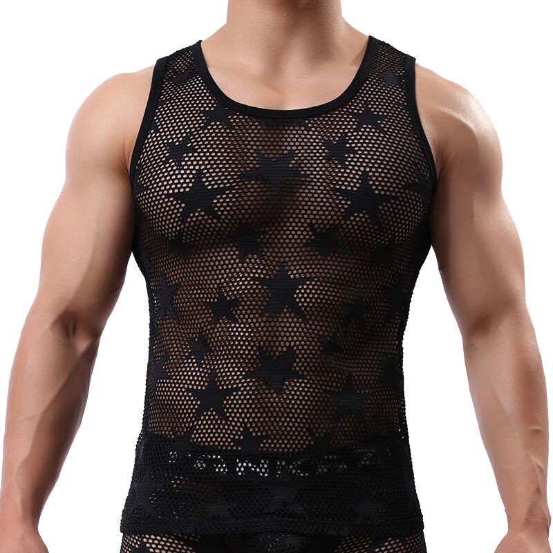 - 8種類の中から選べる メンズ セクシー メッシュ シースルー シャツ 衣装 Tシャツ タンクトップ 薄手 トップス ノースリーブ S-XL:po154