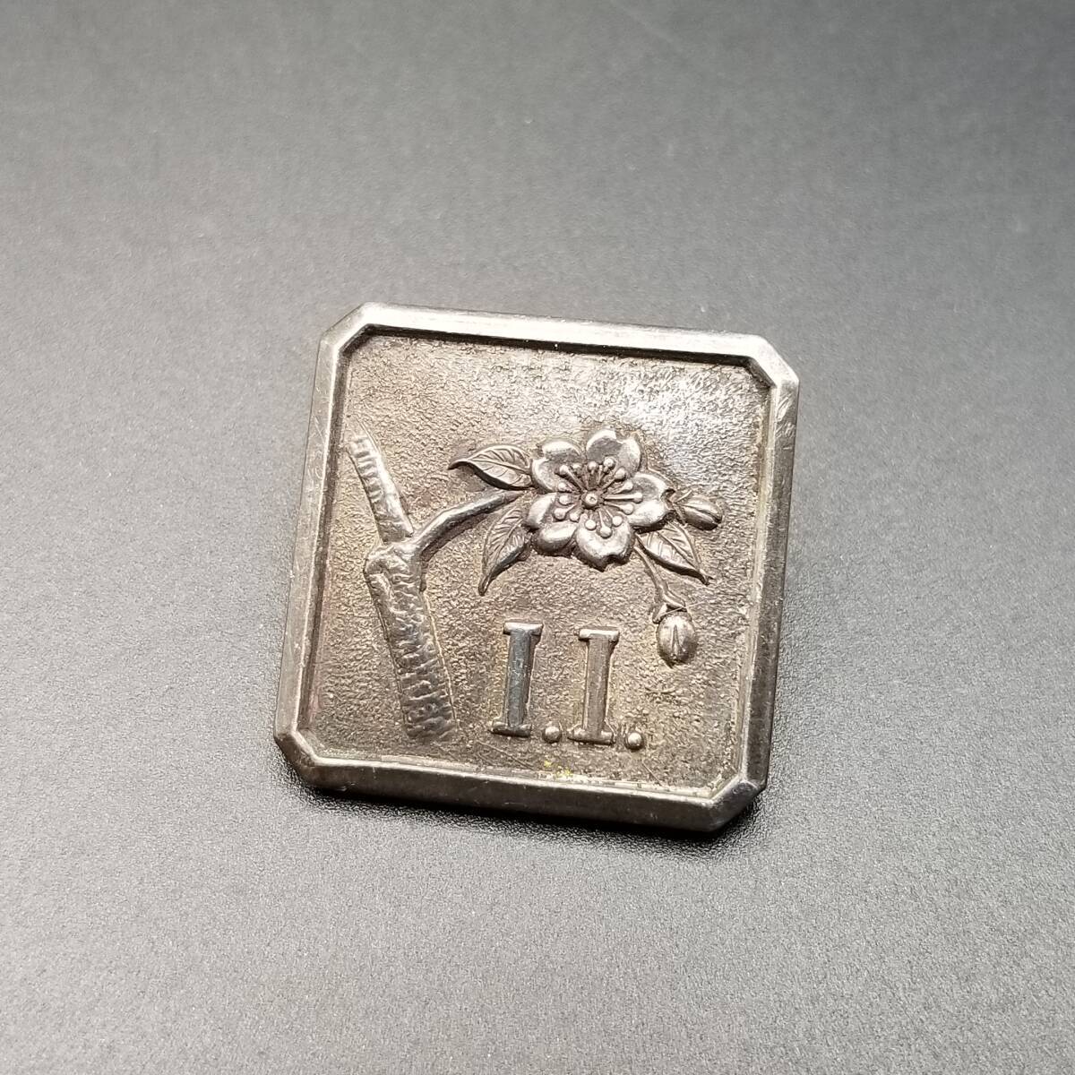 - 桜の花 額縁 スクエア 925 シルバー ヴィンテージ ブローチ フラワー 日本画 ワンポイント ラペルピン 銀 彫金 イニシャルレター I.I Y17-S