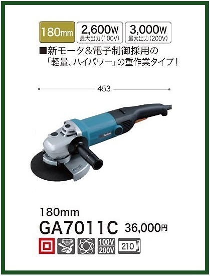> マキタ 電子制御ディスクグラインダ GA7011C (200Vモデル)■安心のマキタ純正/新品/未使用■