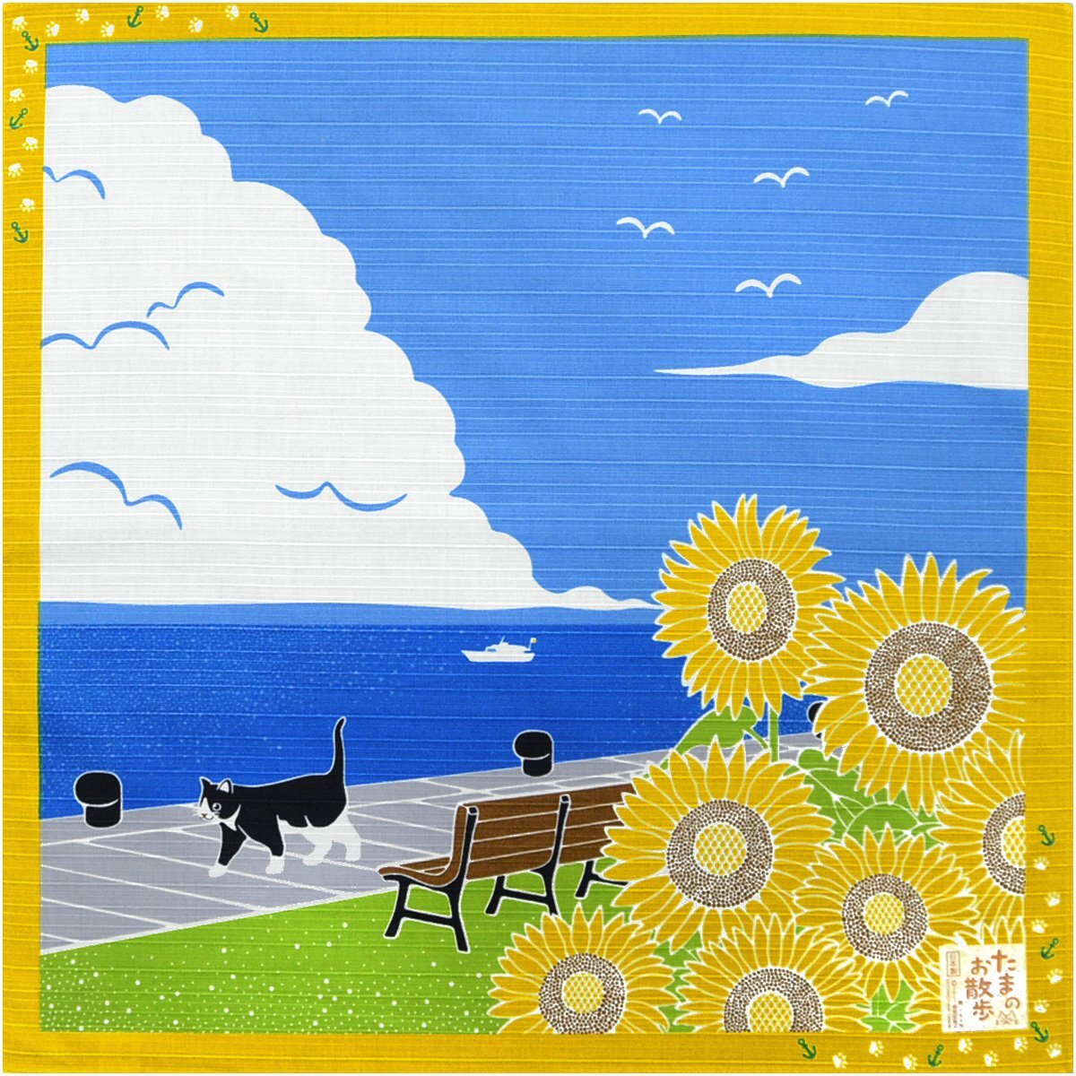 - 小風呂敷 8月(ひまわり) 綿シャンタン(たまのお散歩)日本製 前田染工 紫陽花 13868