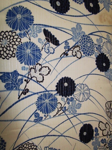 - E-41★白地*菊*ダリア*万寿菊*正絹*絽*古布はぎれ★文化人形/一閑張り/吊るし雛/市松人形