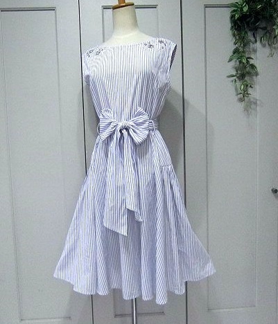 - トッコ tocco ワンピース ビジュー ストライプ リボンベルト