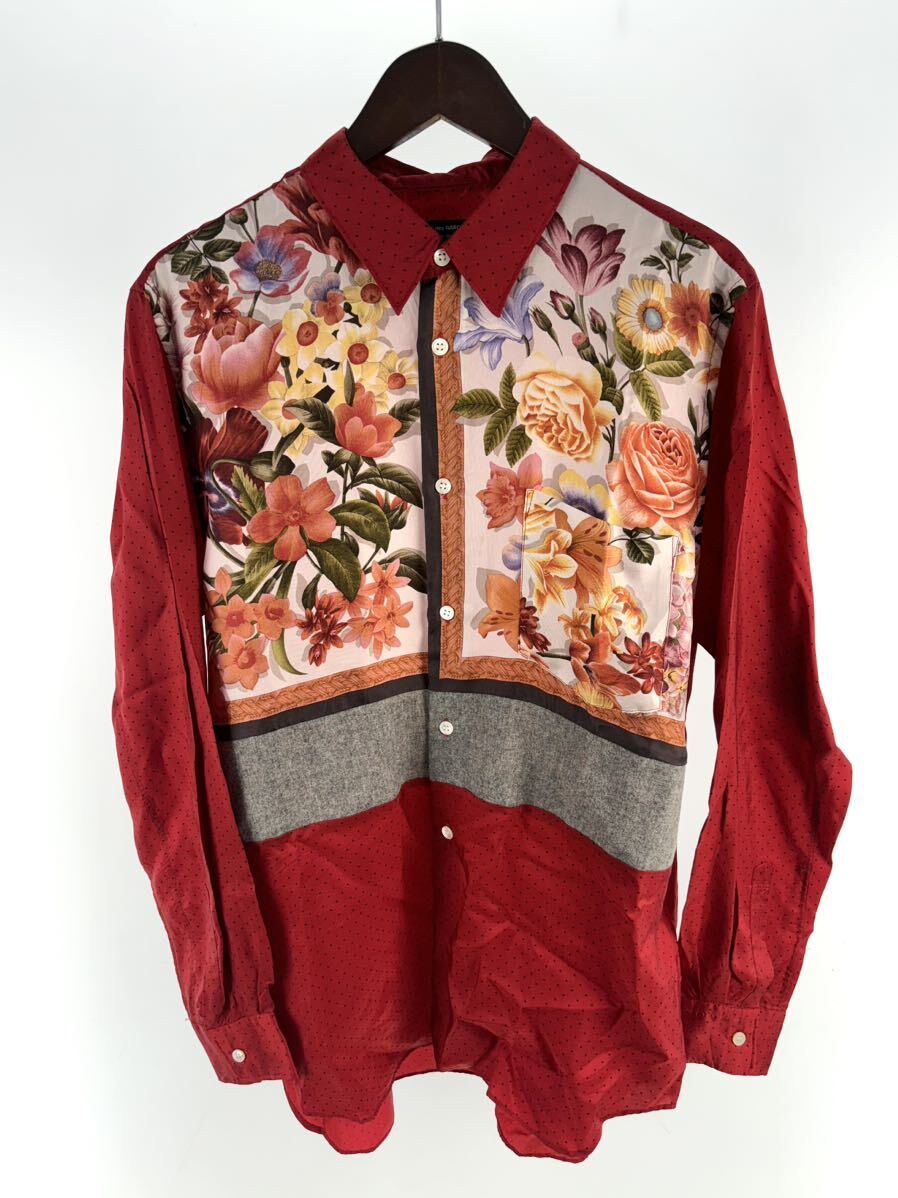 > COMME des GARCONS HOMME PLUS コムデギャルソンオムプリュス スーベニールキッチュ アンティークスカーフ シャツ AD1999 シルク エルメス