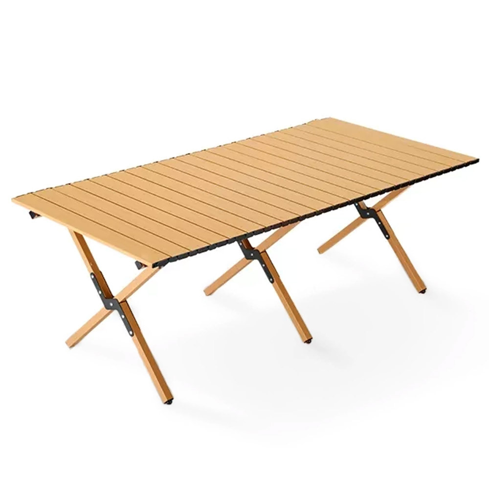 - 【特】折りたたみテーブル ロールトップテーブル キャンプテーブル 簡単組立 収納バッグ付 軽量コンパクト (120x60x45cmナチュラル木目調)