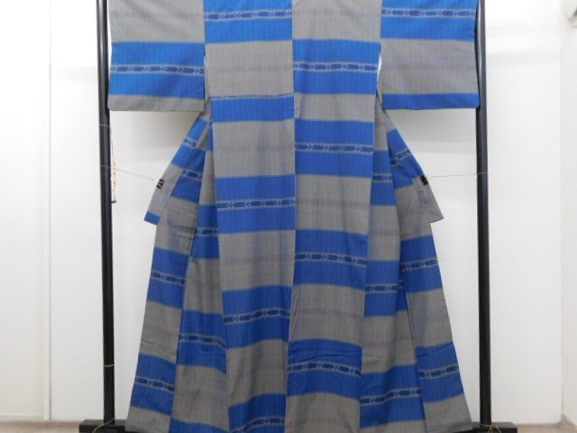 - 〔楽布特選〕P30205 琉球 木綿 絣 袷 藍とグレーの大胆な柄 c