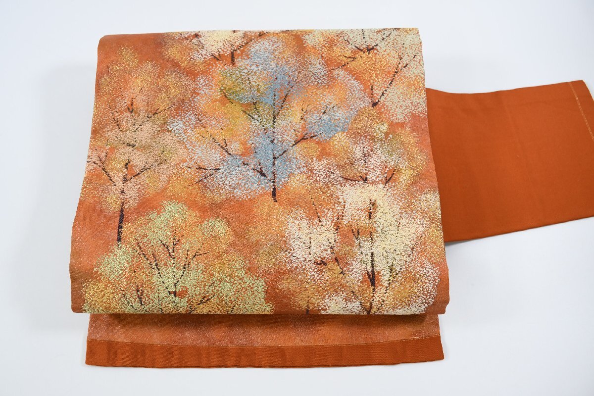 - 名古屋帯 森林 木 帯丈358cm ★着物屋 ne-11235 桜庭呉服店