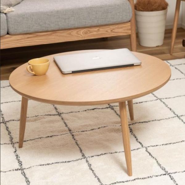 - リビングテーブル コーヒーテーブル ローテーブル 幅70cm 天然木 丸 北欧 おしゃれ 収納 木製 天然木 オーク 木目 ナチュラル 脚付き