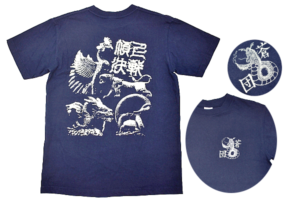 - Y-7622★送料無料★美品★蒼団 ボート部 頂上決戦 ボートレース★ネイビー紺 ドラゴン 虎 プリント 半袖 T-シャツ S