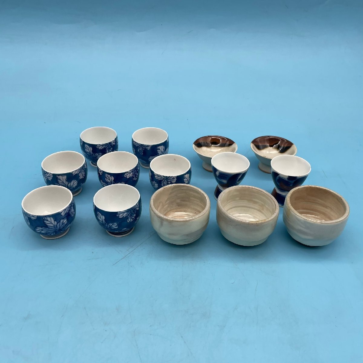 - 【11886P085】盃 まとめて 14点 御猪口 ぐいみ お猪口 酒器 杯 小型 カップ コップ 和食器 陶器 焼物 小さい 和風 和物 華山 等 箱無