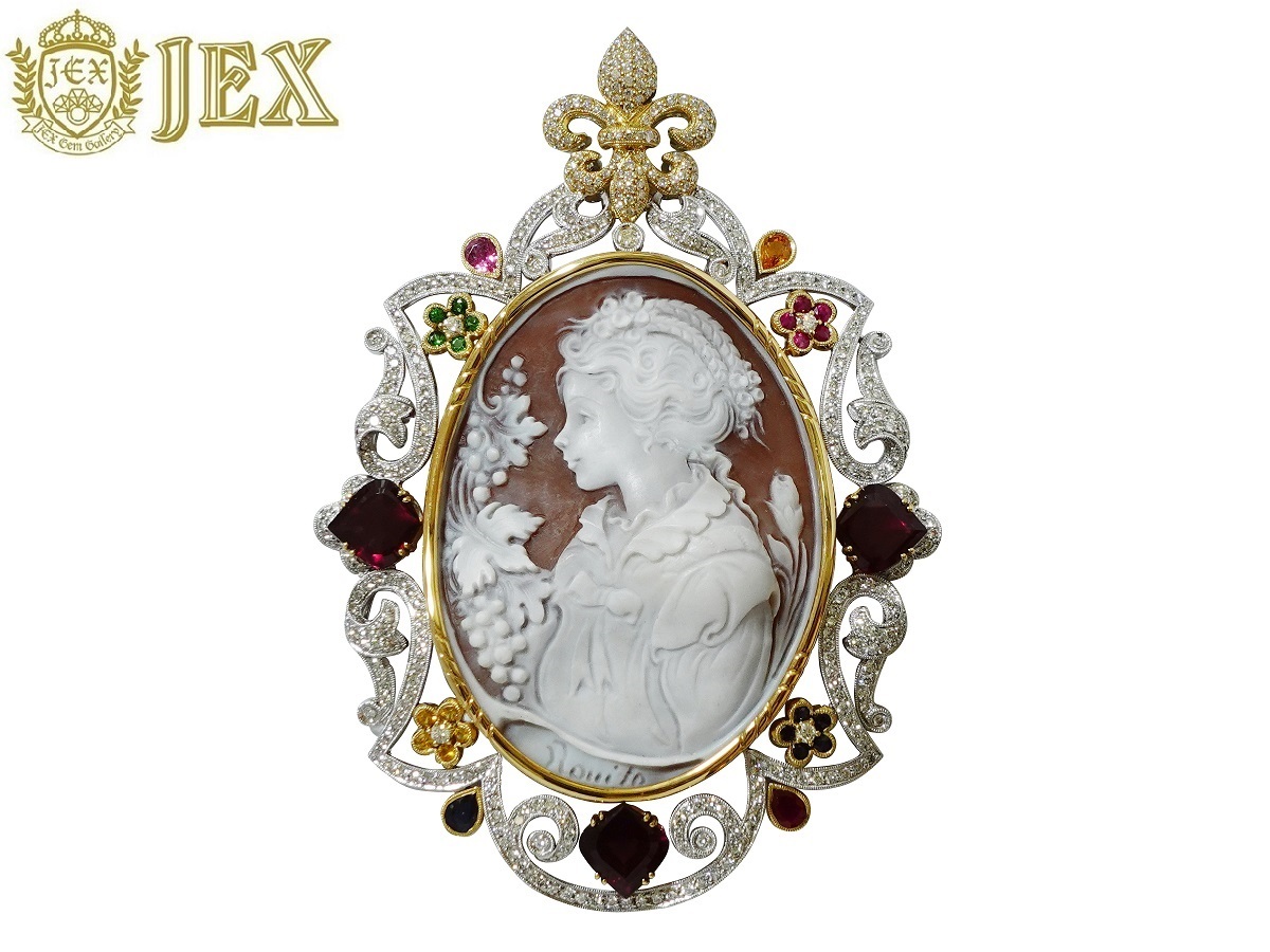 - Shell Cameo K18シェルカメオ ダイヤモンド ガーネット ブルー イエロー ピンクサファイヤ ルビーペントップ NO.304700