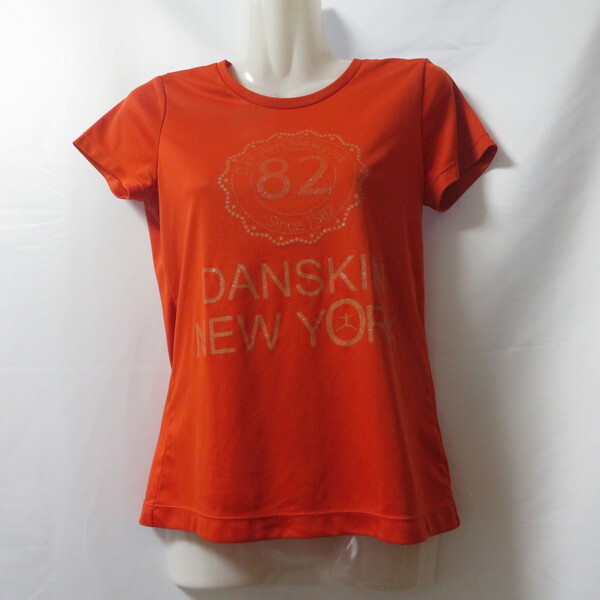- 古着 レディースM DANSKIN/ダンスキン ポリエステルTシャツ 半袖 スポーツ ジム ジョギング トレーニング オレンジ/ラメオレンジ DB71302X