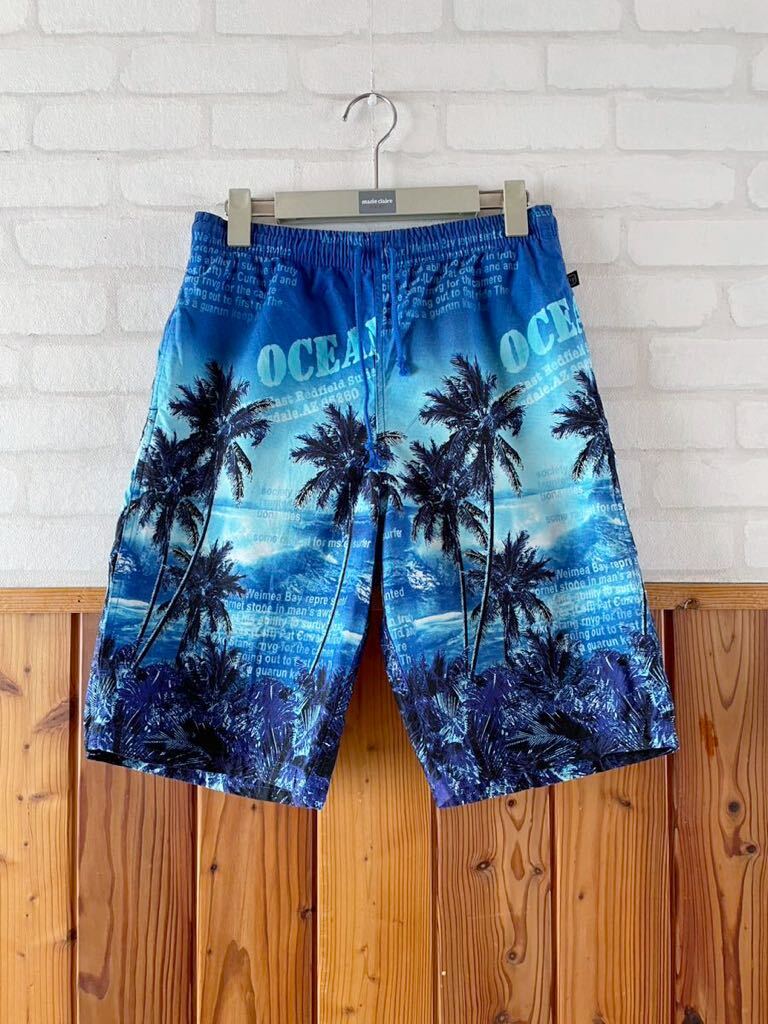 > メンズ 水着 ハーフパンツ Lサイズ 青 ブルー ヤシの木 南国 オーシャン 海パン サーフパンツ ボードパンツ swimwear swimming trunks G