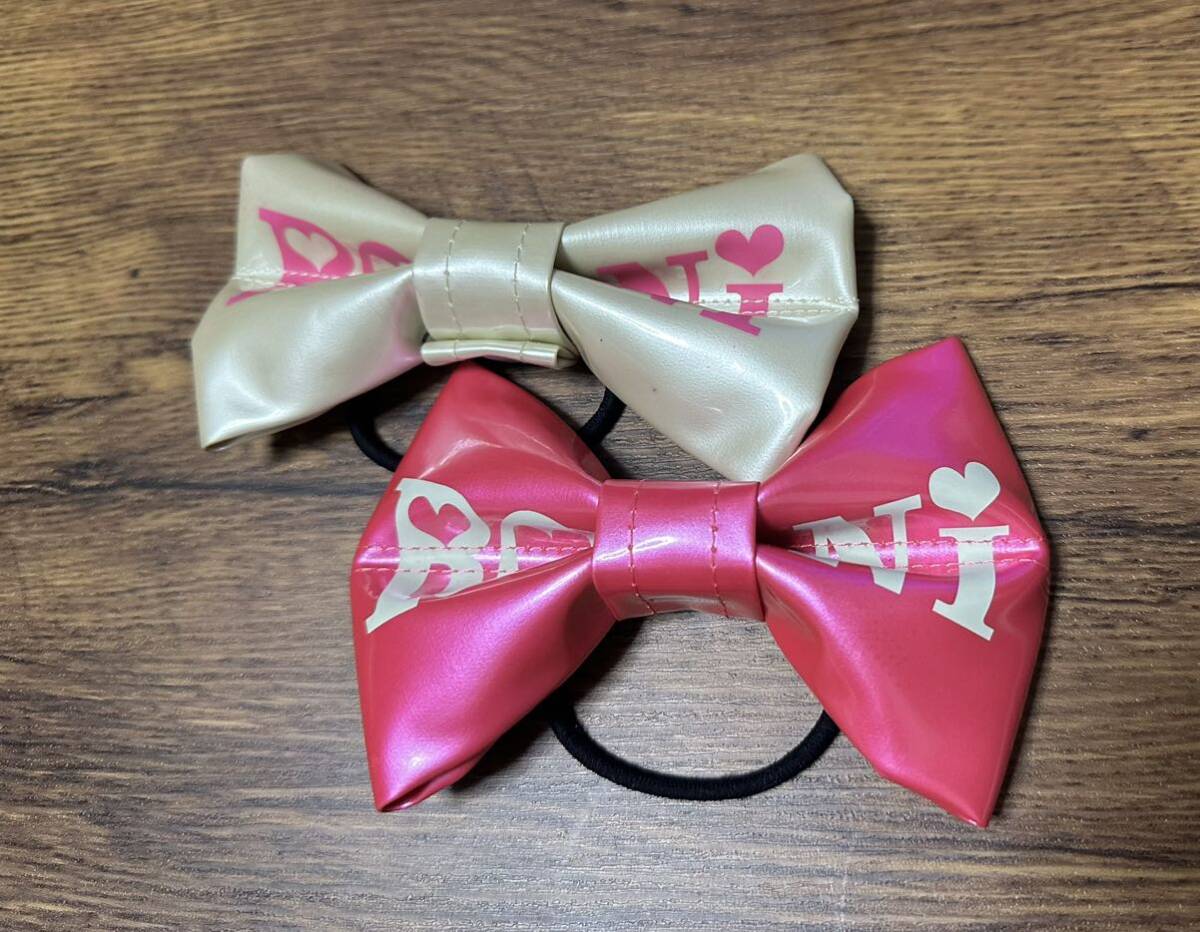 - RONIロニィ エナメル立体リボンヘアゴム ピンク&ホワイトセット ヘアゴム リボン ヘアアクセサリー