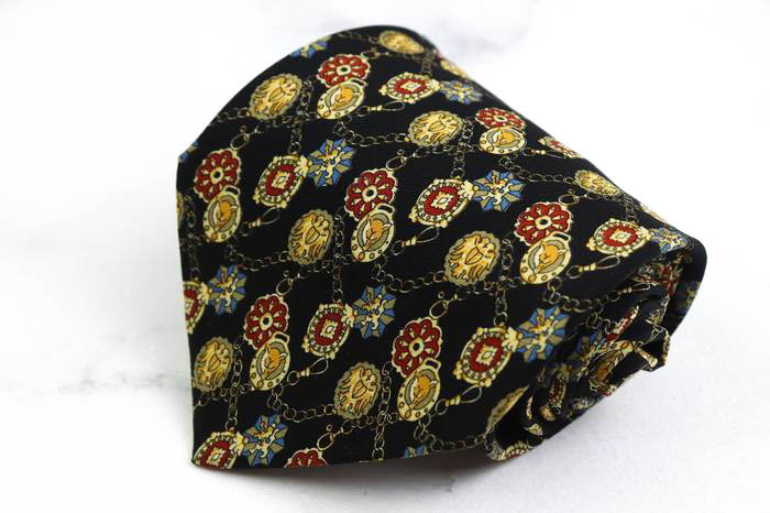 - クレージュ ブランドネクタイ 総柄 ドット 小紋柄 幾何学模様 シルク イタリア製 メンズ ブラック courreges