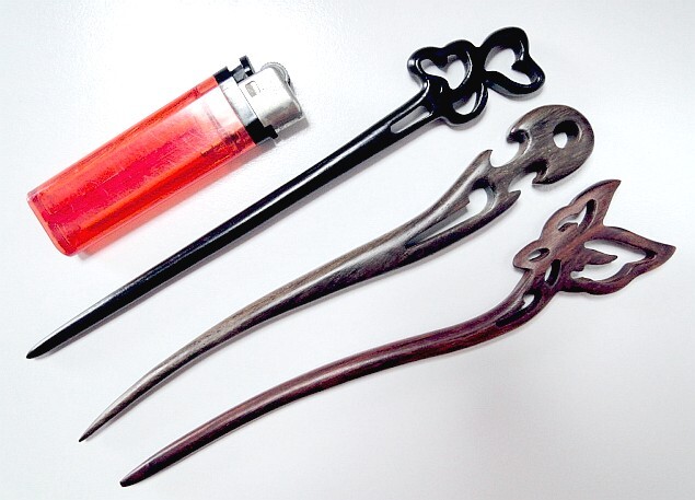 - 【未使用】木製(黒檀など)かんざし3本組(18cm前後)【送料定形外180円】