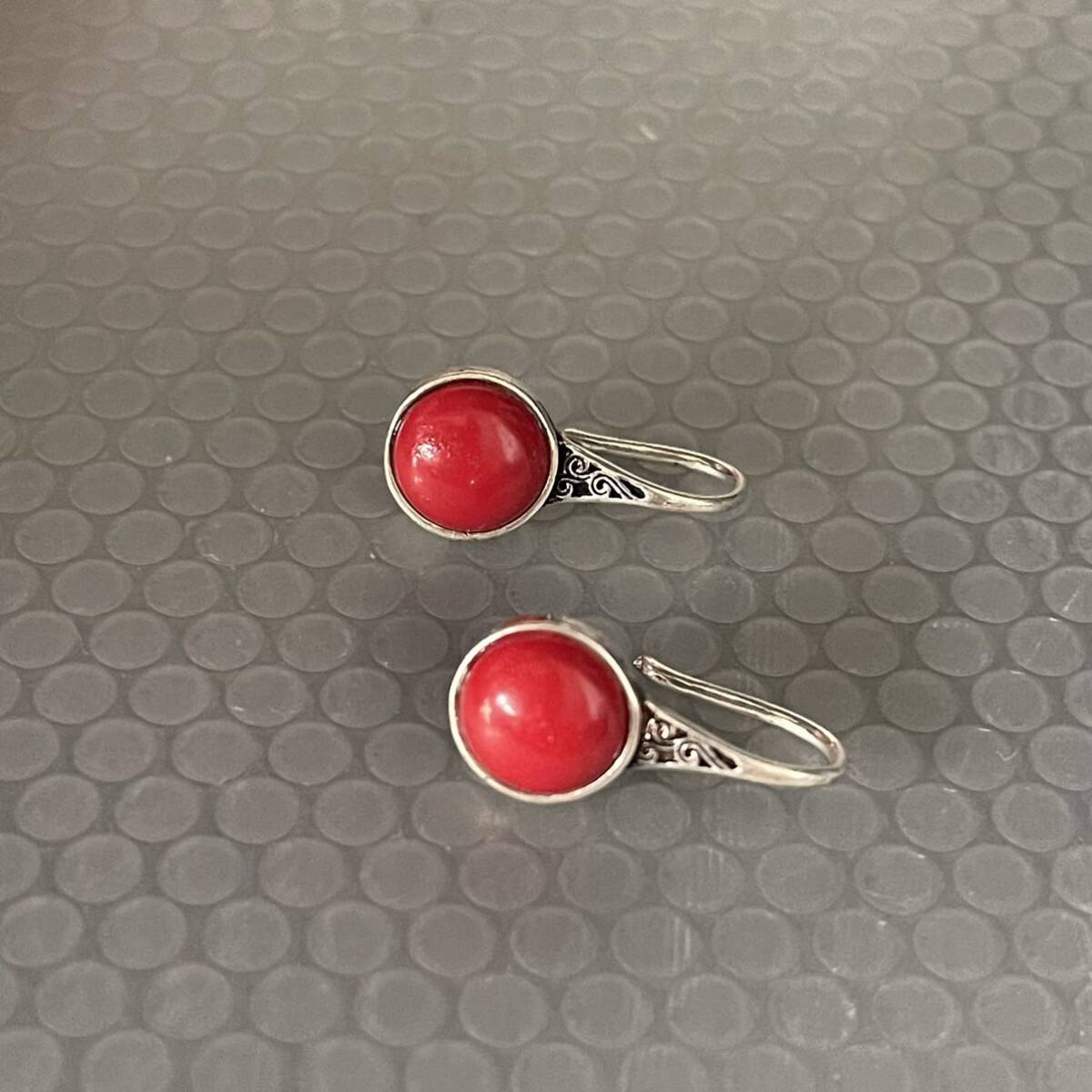 - 天然南赤ピアス8×18mm s925銀刻印あり