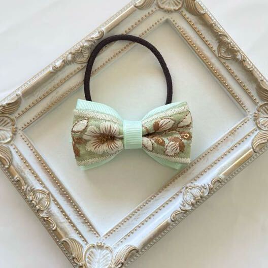 - ★★ハンドメイド27 ヘアゴム リボン インド刺繍リボン ヘアアクセサリー★★