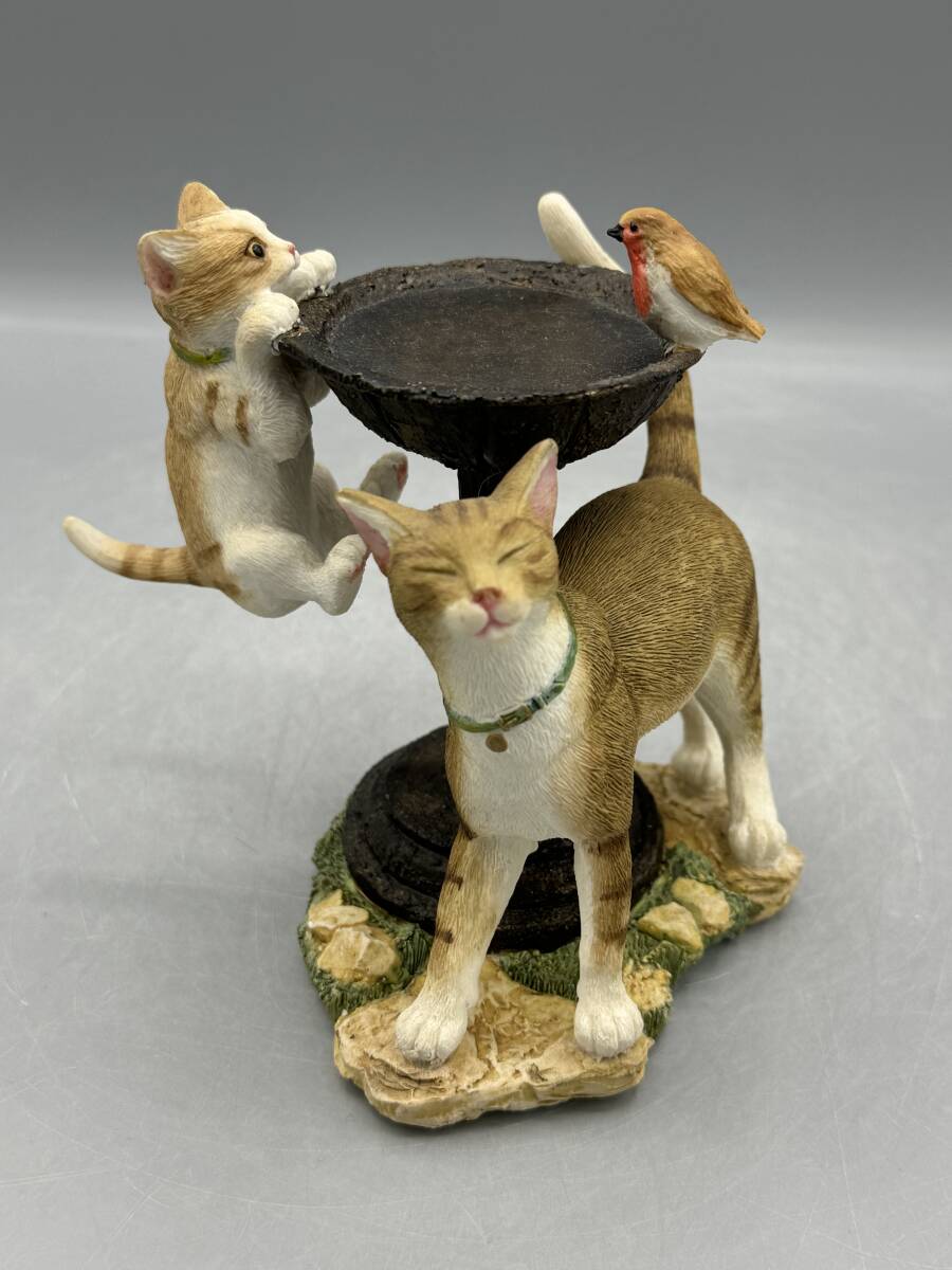 - 英国 シェラット&シンプソン 茶トラ 猫 鳥 置物 ねこ ネコ フィギュリン