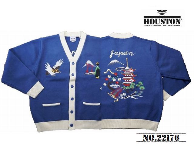 - 【送料無料 39%OFF】HOUSTON ヒューストン スーベニアカーディガン 「城」柄 NO22176 BLUE_Lサイズ