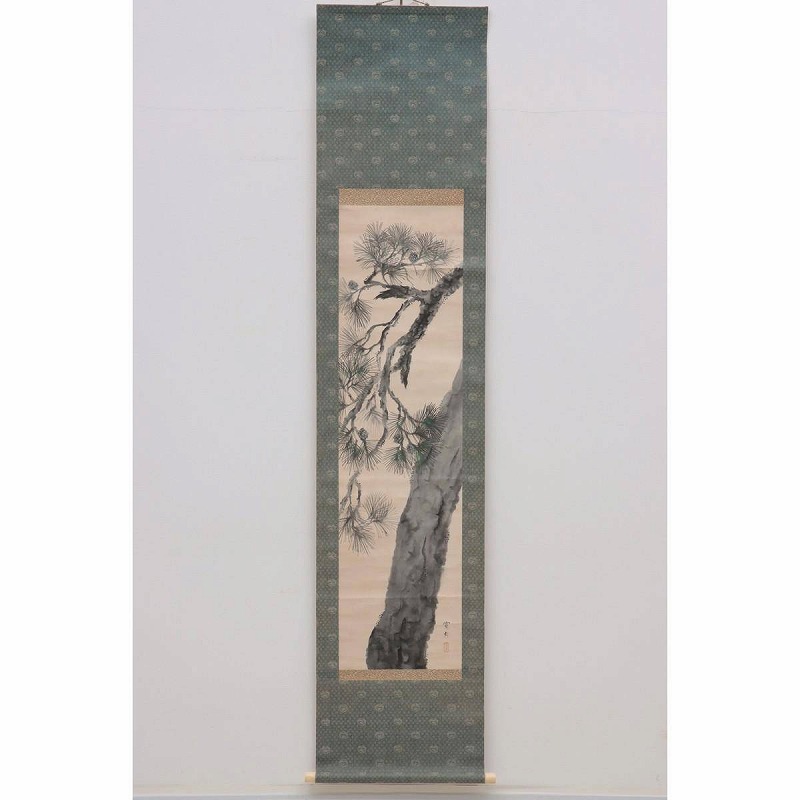 > HI08-9454[TOM]【真作】荒井寛方 掛軸 紙本 肉筆 彩色「松樹図」落款 印有 合箱 日本画家 師・水野年方 JK00