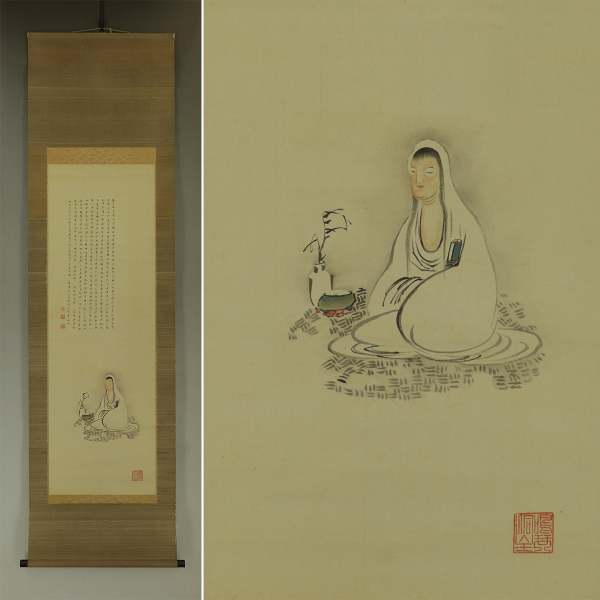 - 【模写】池田春渚【観音画賛】◆絹本◆合箱◆掛軸 s01035