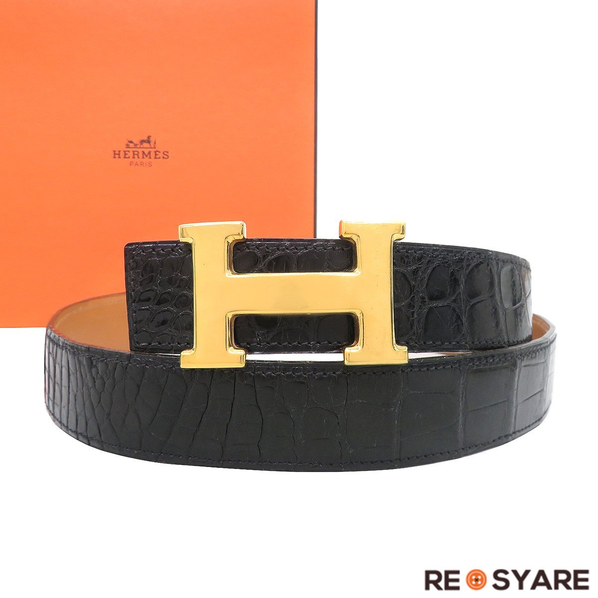 - HERMES エルメス コンスタンス Hベルト アリゲーター クロコダイル レザー ゴールドバックル ベルト 箱付き 46699
