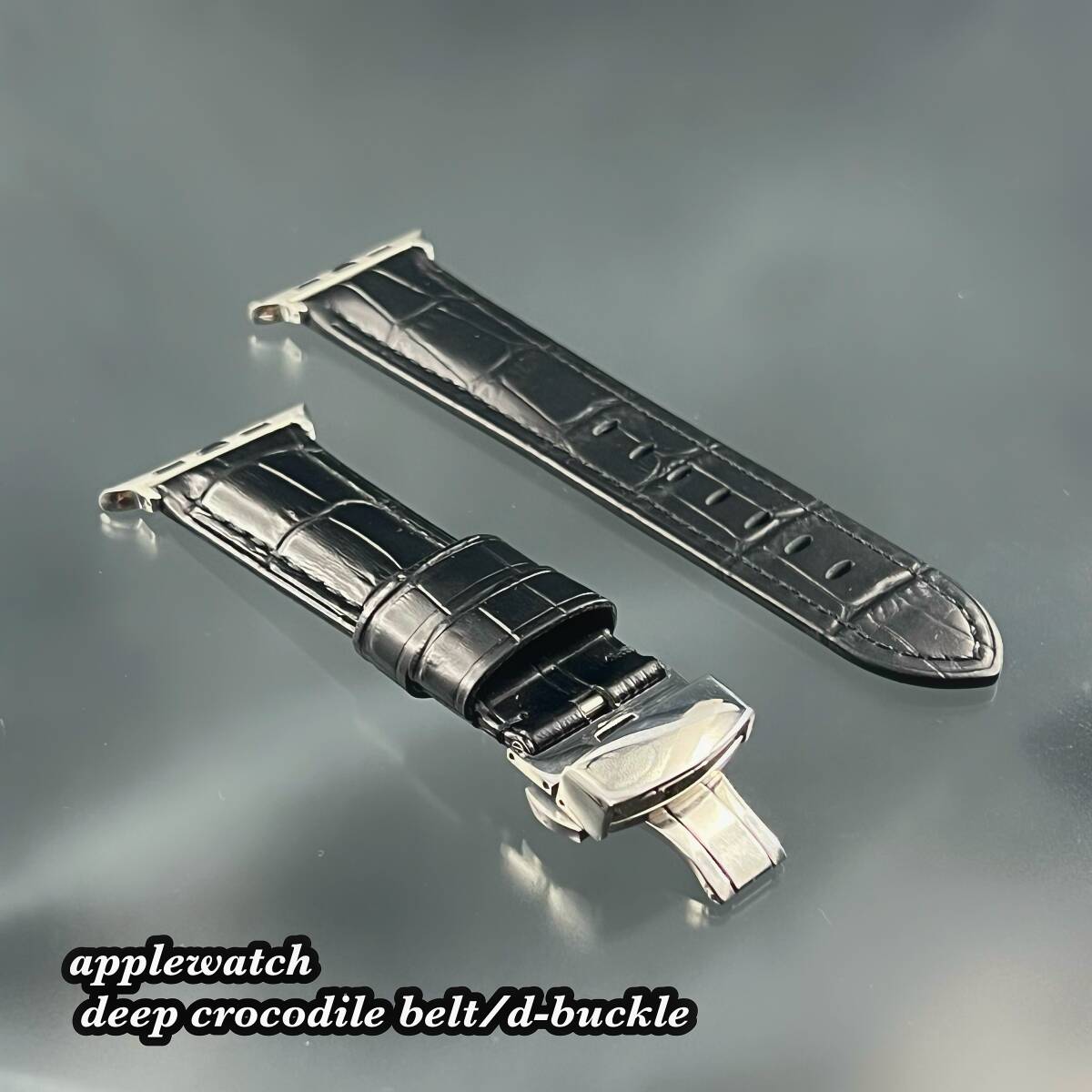 - 本革 牛革 レザー クロコダイル ブラック レザー ベルト 49mm 49ミリ ウルトラ アップルウォッチ 24mm幅 Dバックル ultra