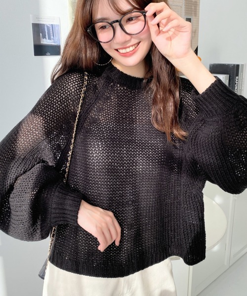 - 新品・未使用♪ moment+≪モーメントプラス≫♪クルーネック/シアーニットプルオーバー/サマーニット♪サイズM♪ブラック♪