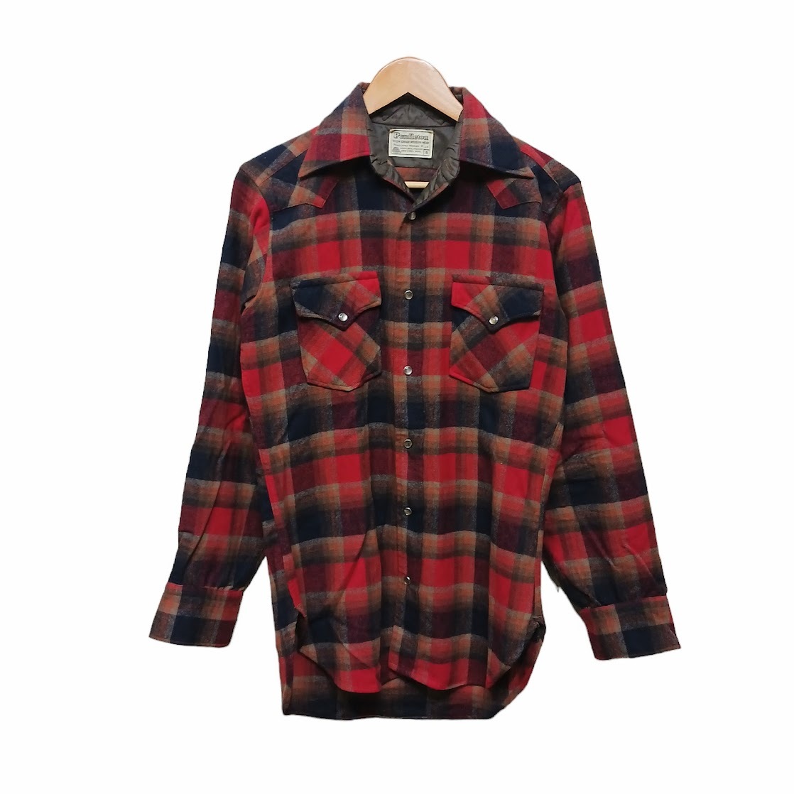- 60s PENDLETON ペンドルトン 長袖 ウエスタン チェック シャツ 赤 ウール サイズS