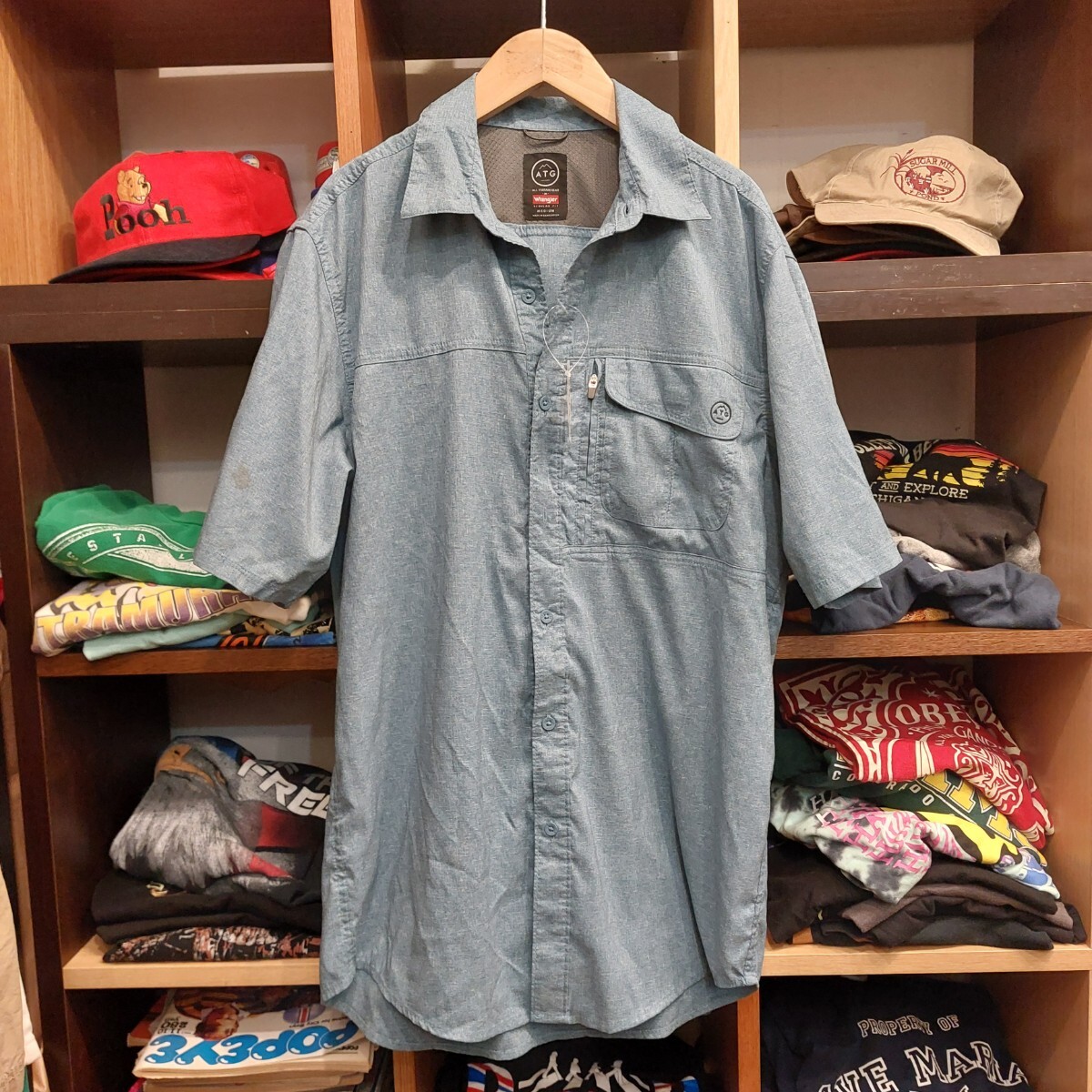 - ラングラー アウトドア シャツ 半袖 ATG 全天候シャツ M インディゴ 06H1401
