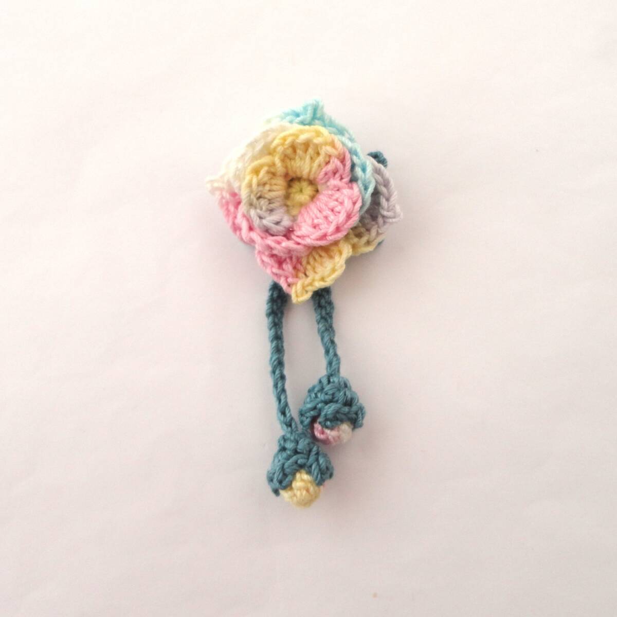 - ツボミが揺れる♪バラのブローチ*PKマーブル*レース編み*ハンドメイド*b641