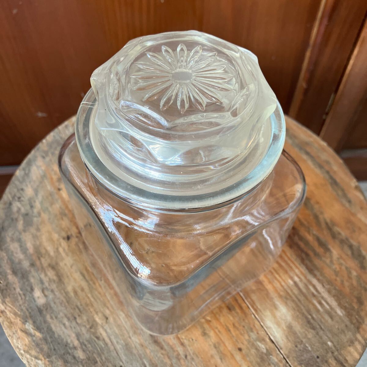 - 昭和レトロ 蓋がかわいい ガラスキャニスター ガラス瓶 当時物 ヴィンテージ レトロインテリア 置物 管A-79