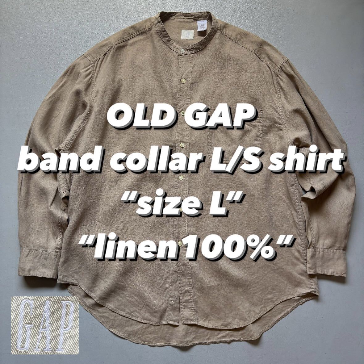 > OLD GAP band collar L/S shirt “size L” “linen100%” オールドギャップ バンドカラーシャツ 長袖シャツ リネン100% キャメル色