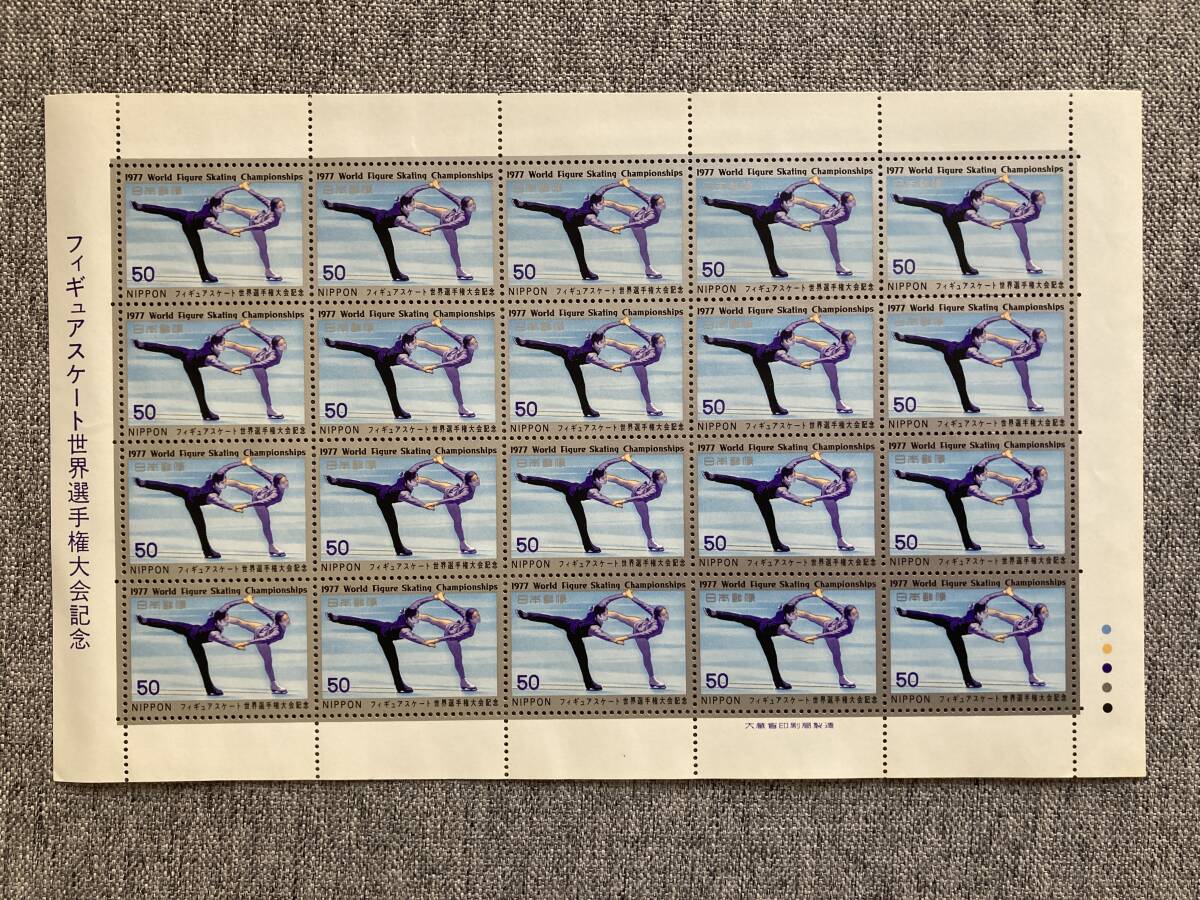 > ★未使用 フィギュアスケート 世界選手権大会記念 ペア競技 1977年 昭和52年 切手シート 50円 20枚 日本郵便