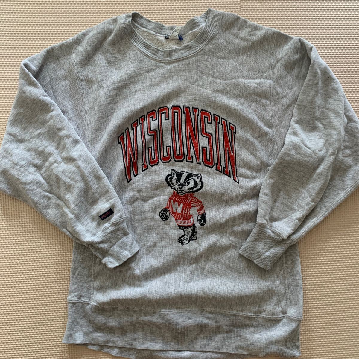 - 90's【Jansport】シャンスポーツ リバースウィーブ スウェット カレッジプリント チャンピオン wisconsin バッキーくん USA製 L グレー